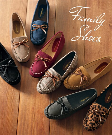 靴 レディース リボン付モカシン シューズ キャメル〜黒 19〜28cm ニッセン nissen