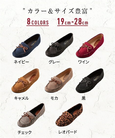 リボン付モカシンシューズ ニッセン nissen 黒 キャメル モカ グレー ワイン ネイビー チェック レオパード カラー 黒/キャメル/モカ/グレー/ワイン/ネイビー/チェック/レオパード サイズ 19.0cm/20.0cm/21.0cm/22.0cm/23.0cm/24.0cm/25.0cm/26.0cm/27.0cm/28.0cm 素材 材質=合成皮革(スエード調) 底材=合成底 重量=約190g(25.0cm片足) 底の厚さ(後ろ)=約1cm ワイズ=3E 柄の出方が多少異なる場合があります。